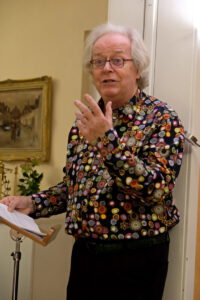 Nachdem ein Offizier den Morgenappell vor der Schlacht verschlafen hatte, verfügte Napoleon, dass alle Offiziere zukünftig eine reisefähige Uhr mit Wecker bei sich führen mussten. Günter Hegemann konnte ein Exemplar dieser Uhr in Lederhülle mit Fensterfunktion vorführen. Ihr Weckruf war nicht zu überhören. Hörte man da das vertraute“ tic tac“ in der Musik von Eric Satie? Franciose Couperin nannte sein Stück sogar „le tic toc choc“, während der Rhythmus seines Stückes les Barriades Mysterieuses dem Wimpernschlag der Hofdamen am Versailles Hof zu verdanken ist. Die einfachen Rhythmen und Melodien in den „Children Songs“ vom Rockjazz-Komponisten Chick Corea und die Filmmusik „La valse de Amelie“ von Yann Tiersen ließen an die Laute der langsamen Pendeluhr oder der schnelleren Armbanduhr erinnern. Die Literatur ist gespickt mit Gedichten und Gedanken zur Uhren und Zeit. Ob es der Aufruf ist die Zeit zu nutzen, denn „flüchtig ist die Zeit“ oder der Trost, „Trägst Du heut ein Trauerkleid, kommt der Tag es abzulegen“. Die Uhrengedichte erinnerten an den vertrauten Klang der Stubenuhr im Elternhaus, an die Uhr als ständiger Begleiter, als Mahner zur Pflicht und Erlöser zur Pause. Aber was ist in diesem Kontext die Ewigkeit? Dazu führte ein Text über die biblischen Begriffe von Chronos und Kairos. Die Zuhörer bedankten sich mit herzlichem Applaus für den kurzweiligen Abend bei der Pianistin Regine Regner für ihre einfühlsam vorgetragene Klaviermusik, Christian Erdhütter für die ausdruckstarke Rezitation, bei Günter Hegemann für die Vorstellung der besonderen Uhren und ihrer Geschichte sowie bei Hausherr Paul Wiegelmann für die Zusammenstellung und Moderation des Programms.