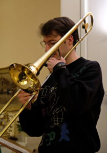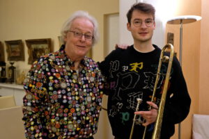 Musikalisch wurde der Abend durch Falizian Tenthoff, Oelde bereichert, der an der Folkwang Universität Essen Jazz-Posaune studiert und mit spontanen Improvisiationen gekonnt »musikalische Flatulenzen« zauberte. Die Gäste dankten lachend mit viel Applaus für den amüsanten Abend.